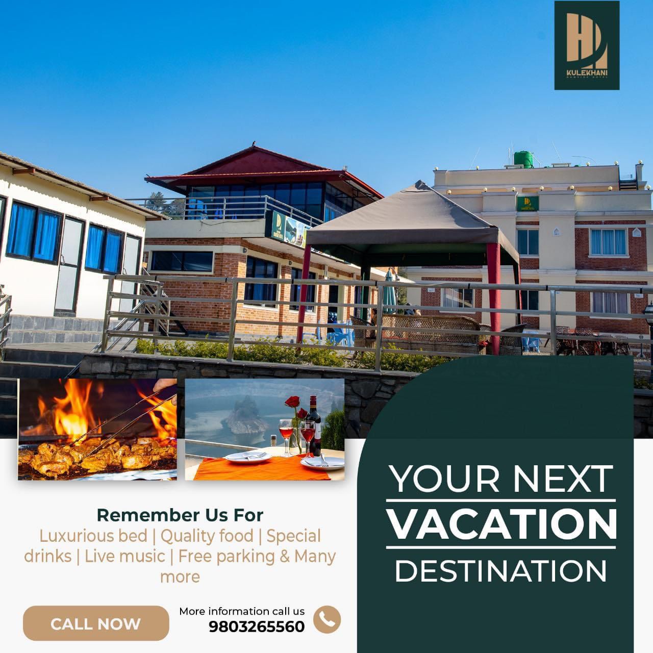 कुलेखानीको पर्यटन प्रबर्धन र गाउँमै रोजगारी श्रीजना गरौ भन्ने अठोटका साथ तीन बर्ष अगाडि सुरु गरेको कुलेखानी ड्यामसाईड होटल जहां अतिथी सत्कारका निमित्त Swimming pool,FAMILY SUIT ROOM, COUPLE ROOM र TRIPLE SHARING मा बस्ने व्यवस्था हुनुका साथै आउट डोर टेन्ट , Ac / Non Ac सहित २४ रुमहरु रहेका छन। उक्त रिसोर्टमा योग ध्यान मेडिटेसन , हाइकिङ्,पिकनिक तथा बिभीन्न कार्यक्रमहरु गर्न र गराउन सकिने ब्यवस्था रहेको छ उक्त होटलमा पर्याप्त पार्किङको उचित व्यवस्थापन रहेको छ ।